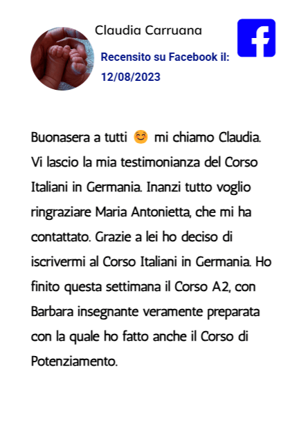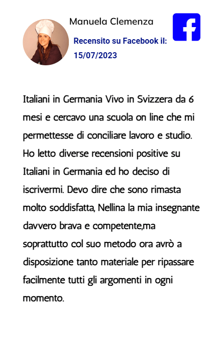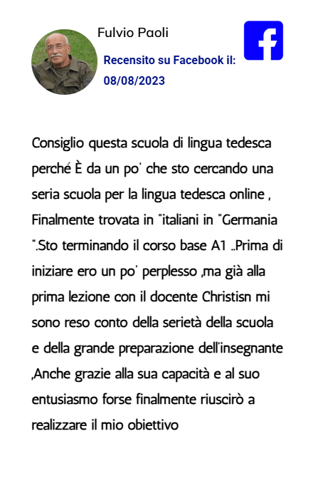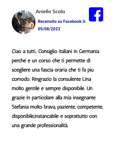 Da molti anni a fianco ai lavoratori e persone che vogliono imparare il tedesco. Il nostro metodo di insegnamento ti consentirà di migliorare il tuo Tedesco in maniera semplice ed efficace comodamente da casa.